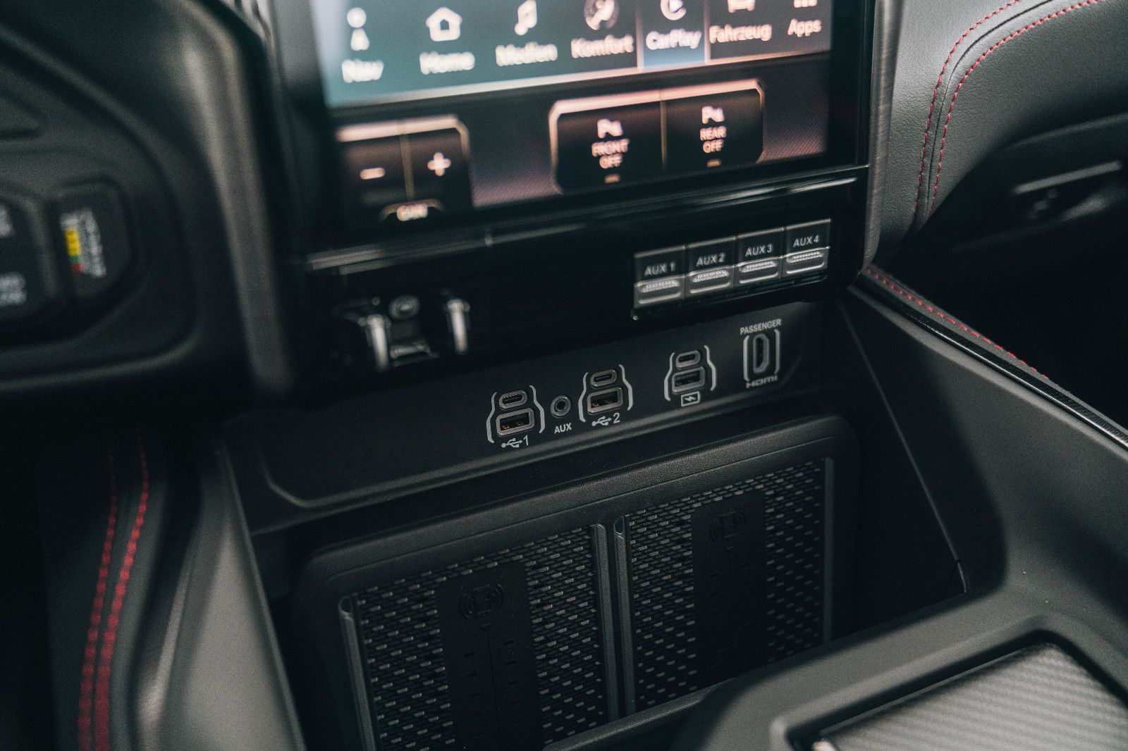 wykończone czerwonymi przeszyciami